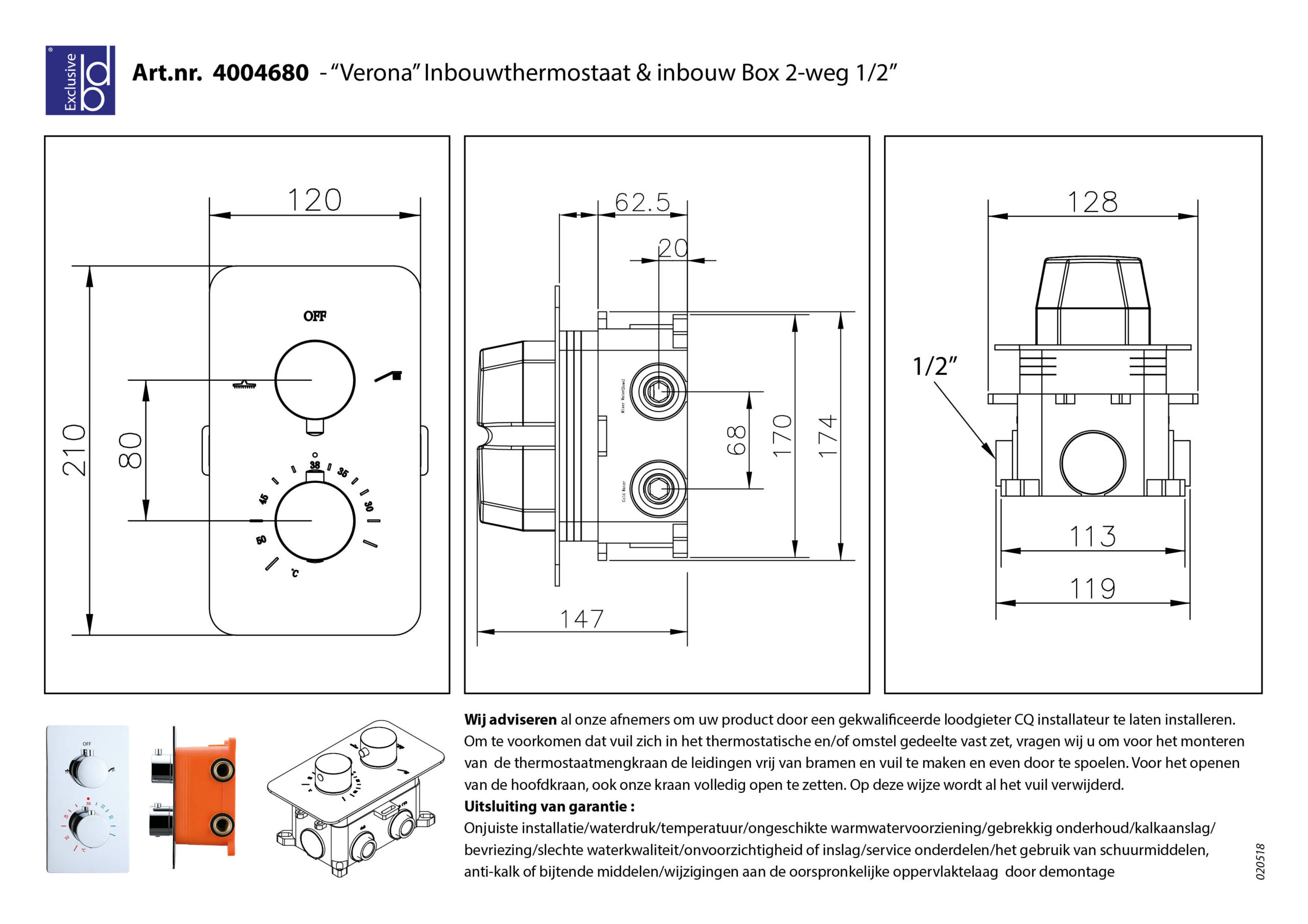 Opsteekmuuraansluiting 1/2″ aanwezig:Ja