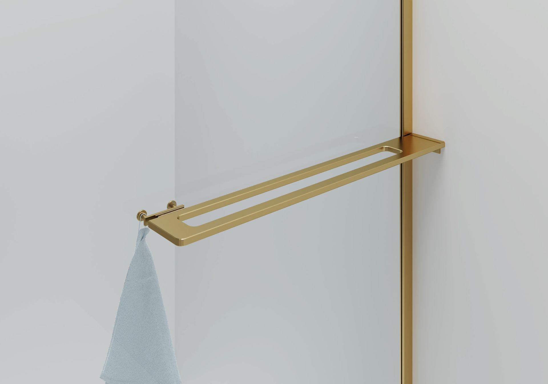 CURVY INLOOPDOUCHE MET HANDDOEKHOUDER 100X200CM – GEBORSTELD GOUD