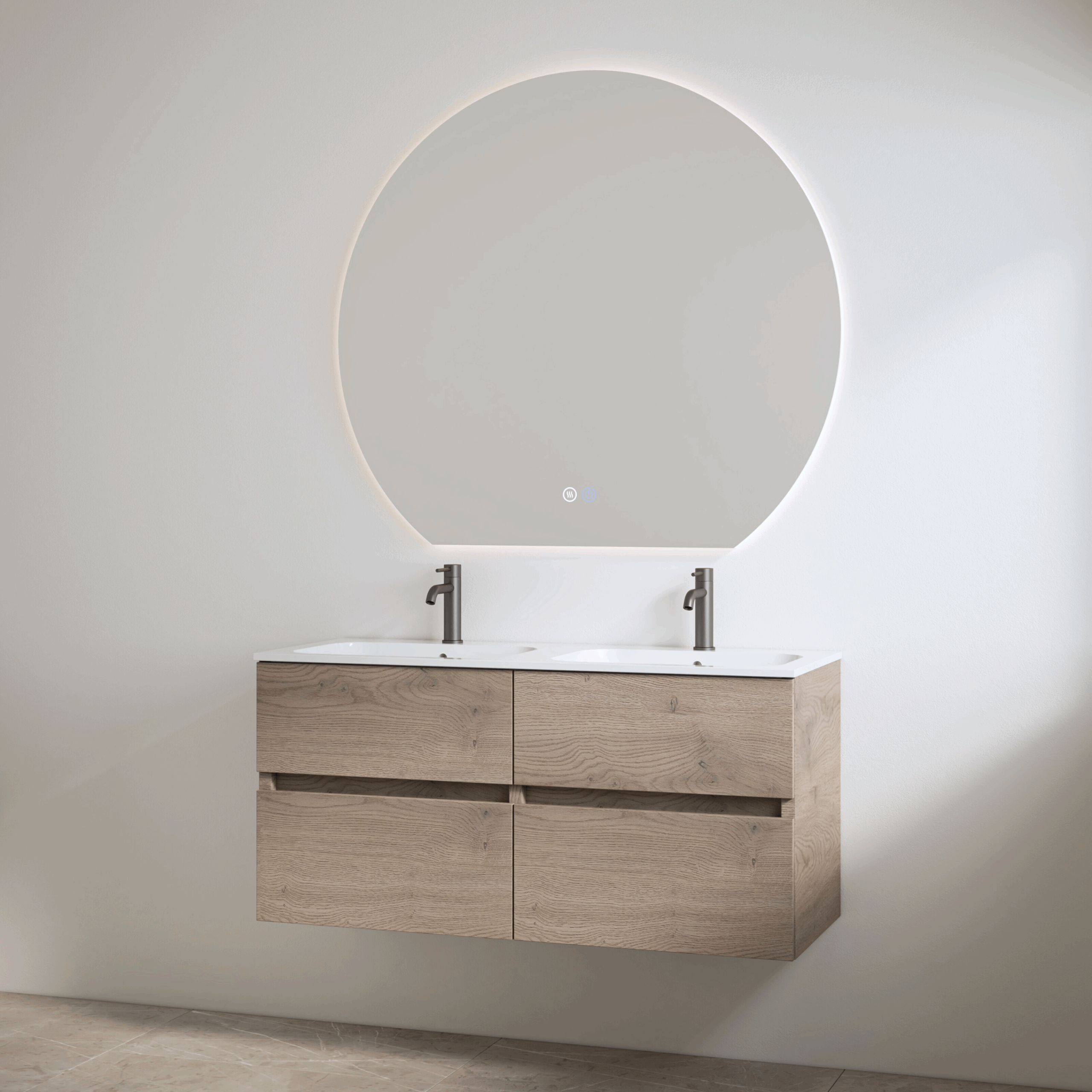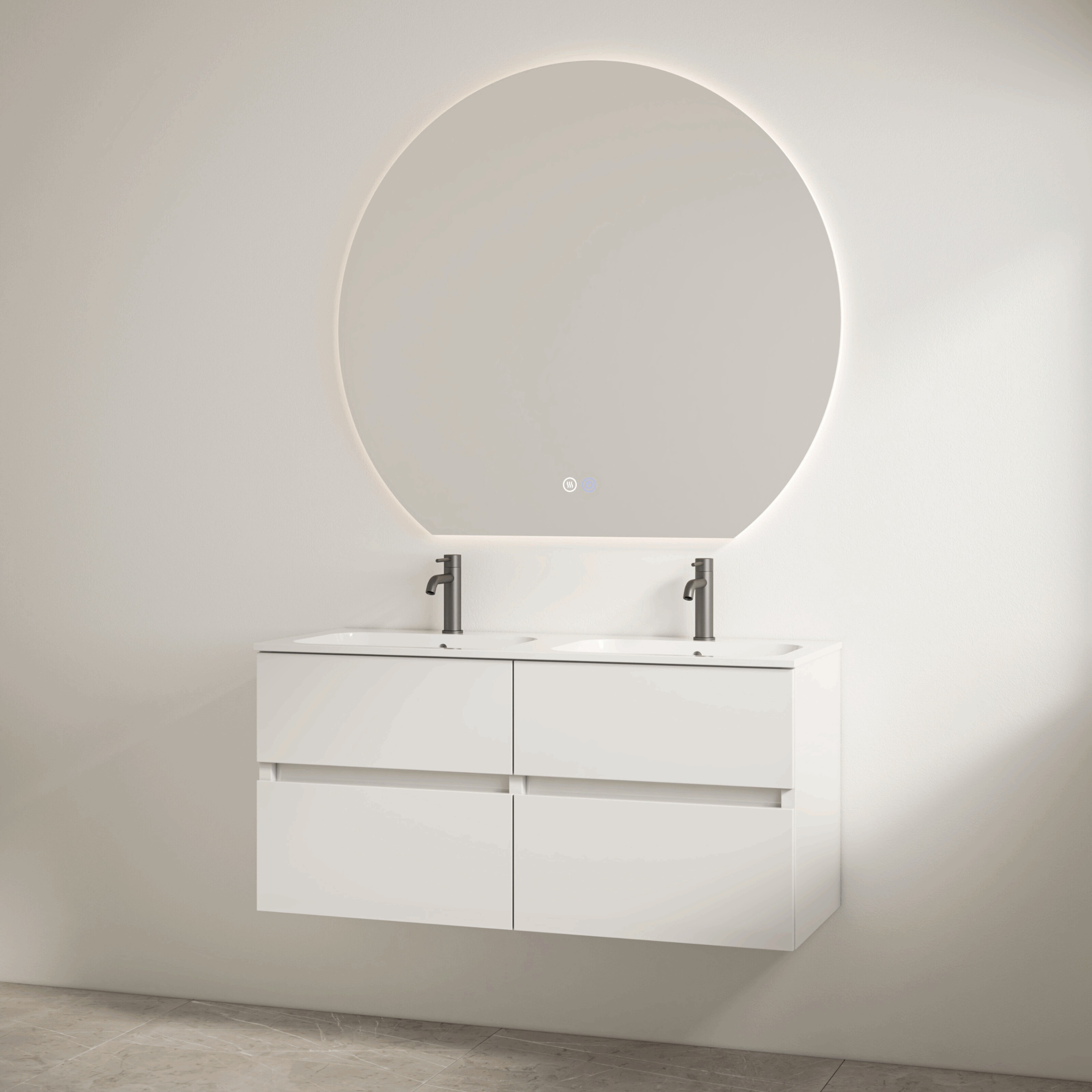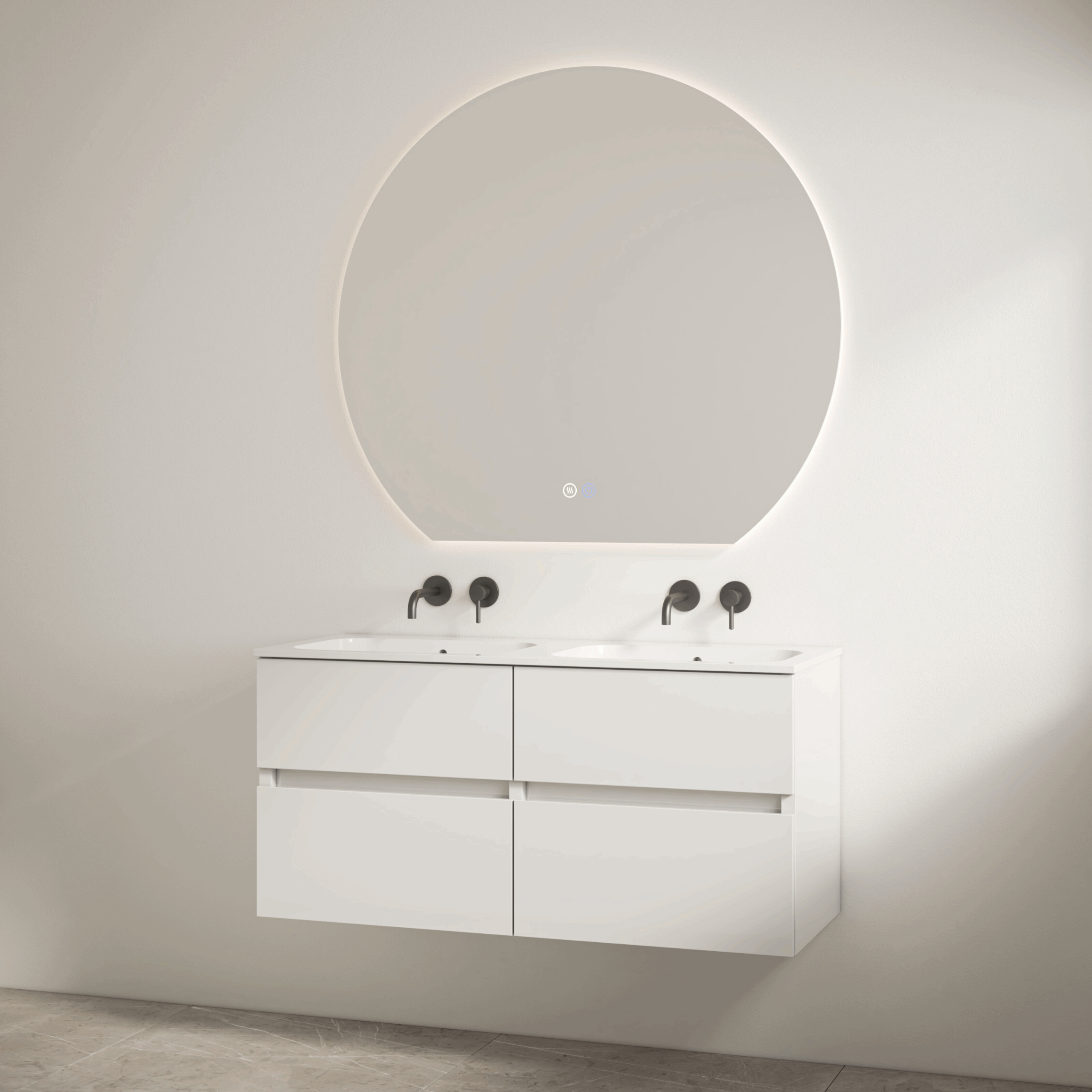 wit onderkast + duo wastafel met 2 kraangaten 120cm