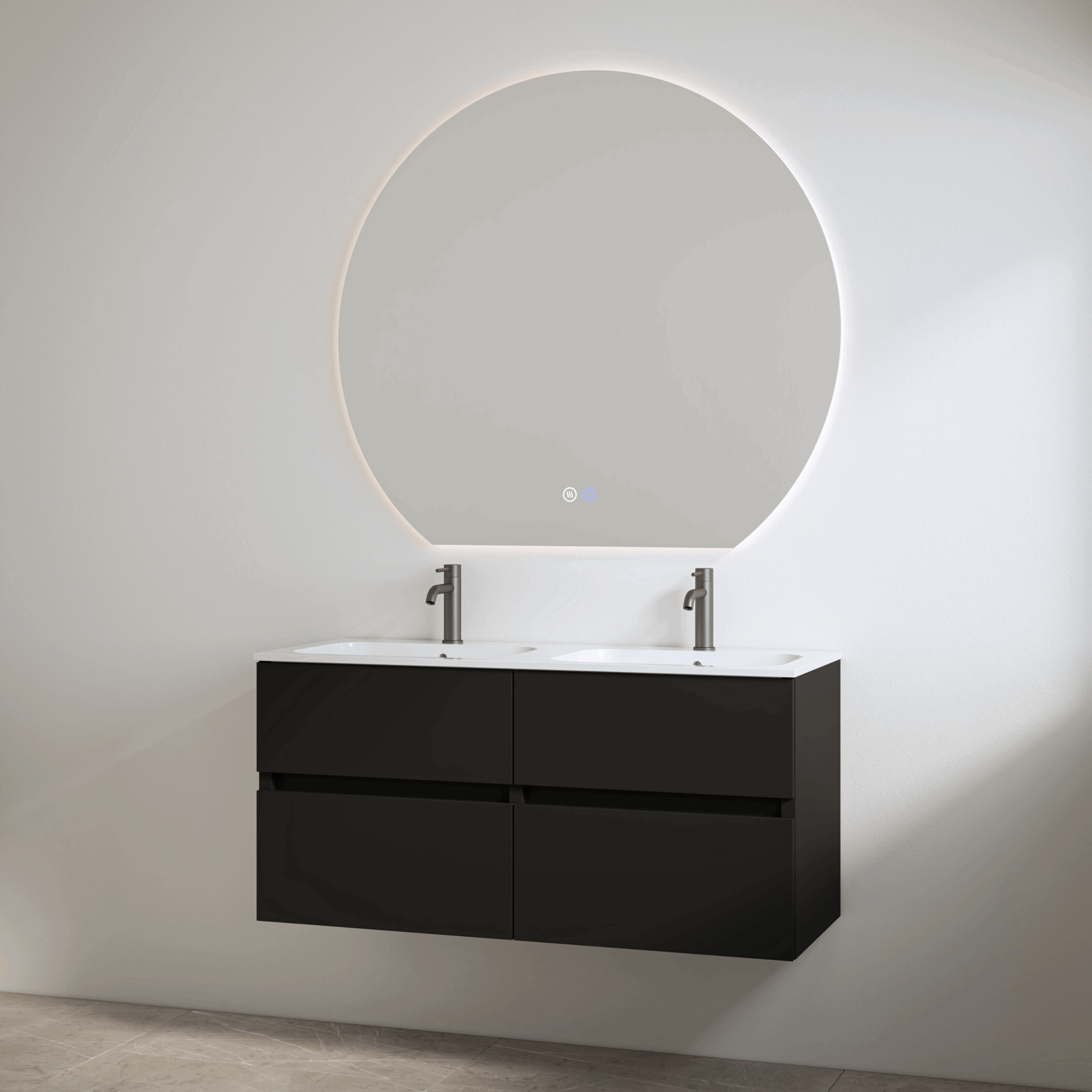 zwart onderkast + duo wastafel met 2 kraangaten 120cm