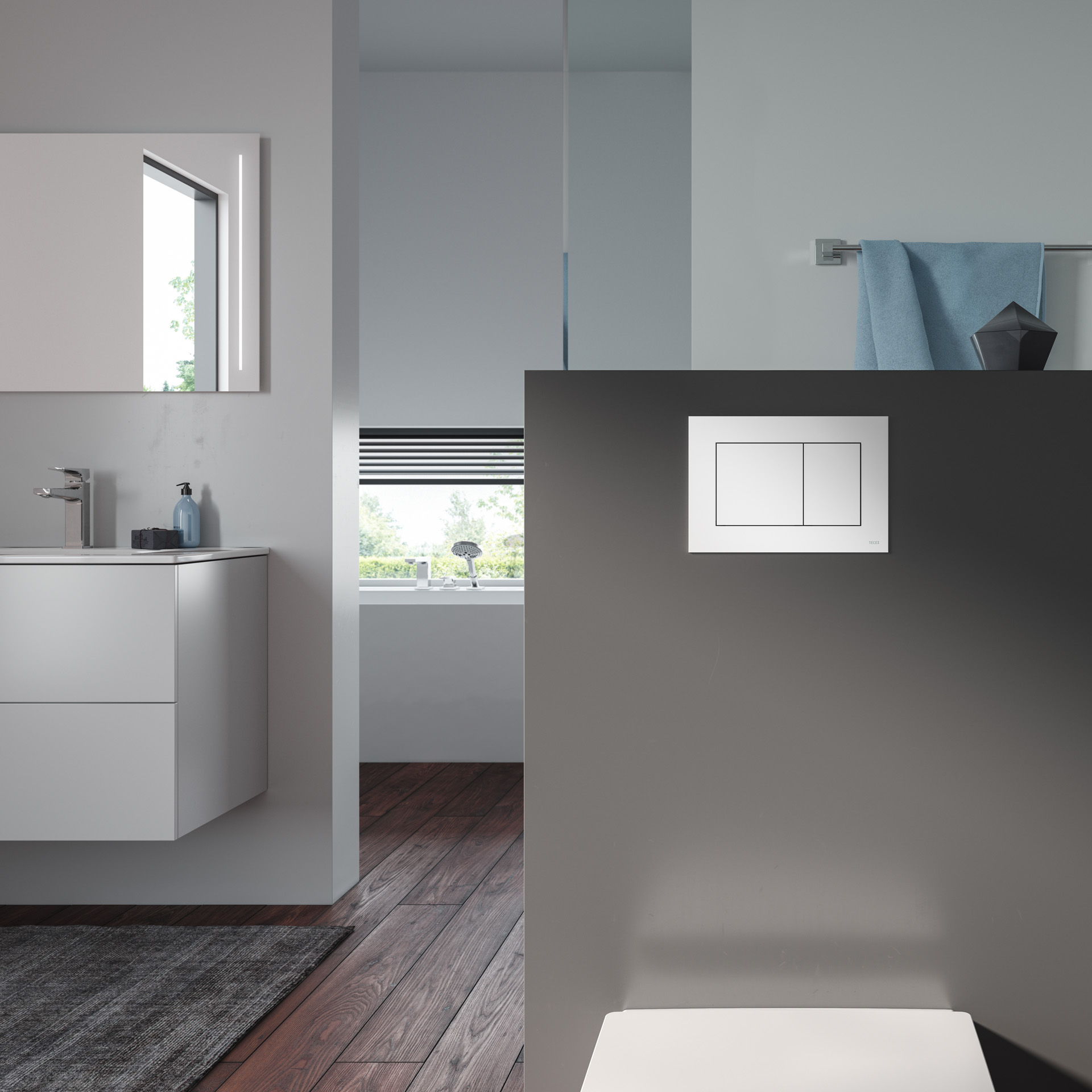 De bedieningsplaat ‘NOW’ van topmerk TECE heeft een strak en minimalistisch design met grote toetsen voor een aangenaam gebruiksgemak. Het vlakke ontwerp is maar 6mm breed vanaf de muur en straalt zo een zeer moderne look uit.